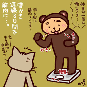 雪かきハード→筋トレ→腹減る→大量に食べる