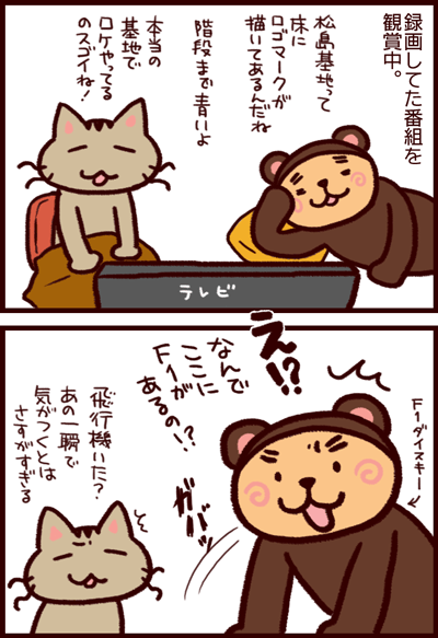 クマさんがF-1といえば、フォーミュラカーじゃなくて飛行機!