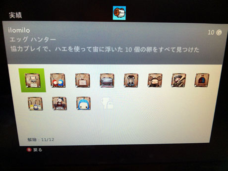 エッグハンターをゲットして、これで実績が11個解除!