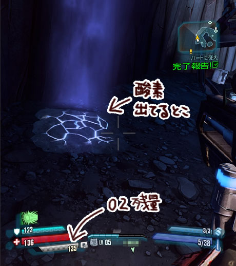 酸素が出てるとこに行って補給しつつ進む。