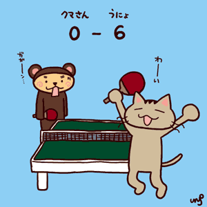 卓球の対戦してみたら、クマさんにまさかのストレート勝ち。