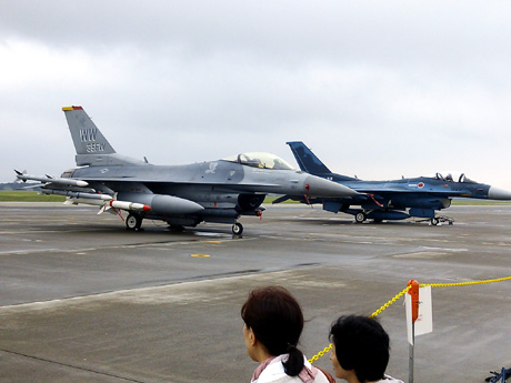左 アメリカ空軍F-16ファルコン、右 航空自衛隊F-2バイパーゼロ