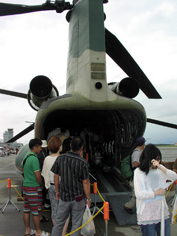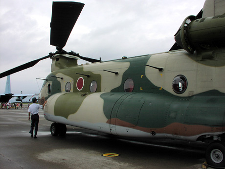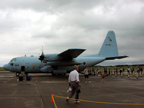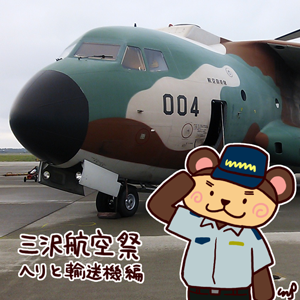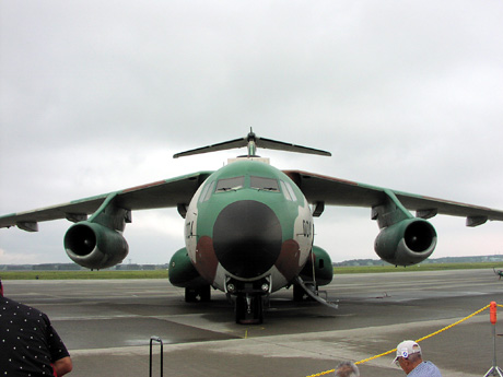 クマさんの後ろは、丸くてかわいい顔のC-1輸送機。