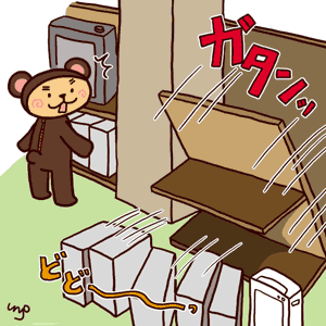 そりゃ急に隣の棚が倒れれば焦るよね!