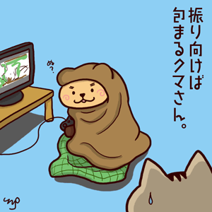 振り向けば包まってるクマが('д')