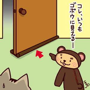 ドアの下に挟みこんで、冷暖気を遮断する細長いウレタンみたいなもの。