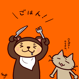 クマさんが「和食!和食!」と言いつつ、なぜか「びっくりドンキー」。