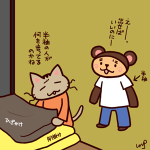 あ、さすがのクマさんも今日から長袖パジャマ。