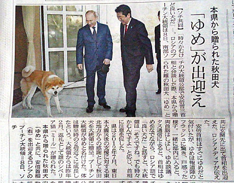 以前、秋田県知事からプーチン大統領に贈られた秋田犬「ゆめ」。
