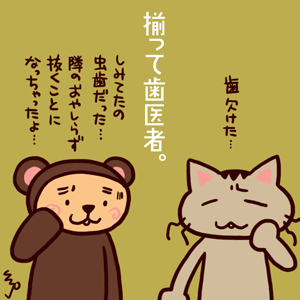 クマさんは冷たい水がしみてたので歯医者へ。