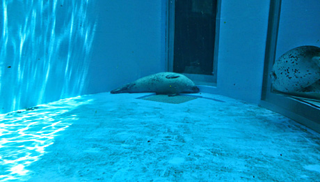 見てる間、ずっと水底で寝ていたゴマフアザラシ。