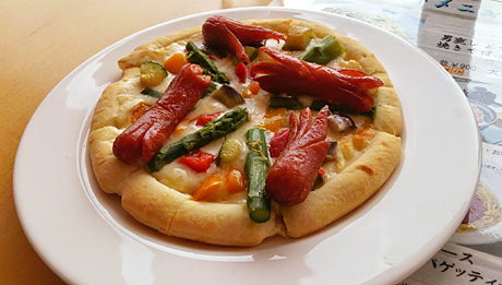 ピザ。タコカニウインナーがのってる。