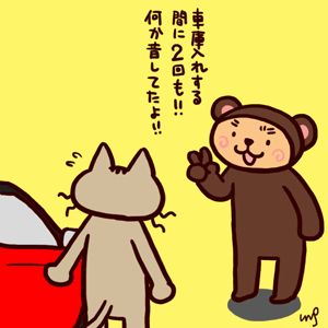 たまたま帰宅時の車庫入れを見ていたクマさん。