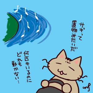 通勤途中に渡る川に今日は珍しくサギがいた。