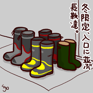 入口脇にズラリと並んだ長靴は何だかシュール。