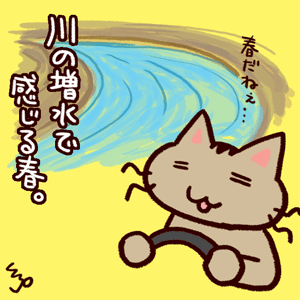 雪解けで川が増水中('д')