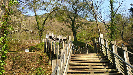 3階から外に出たところ。登り階段が続く。