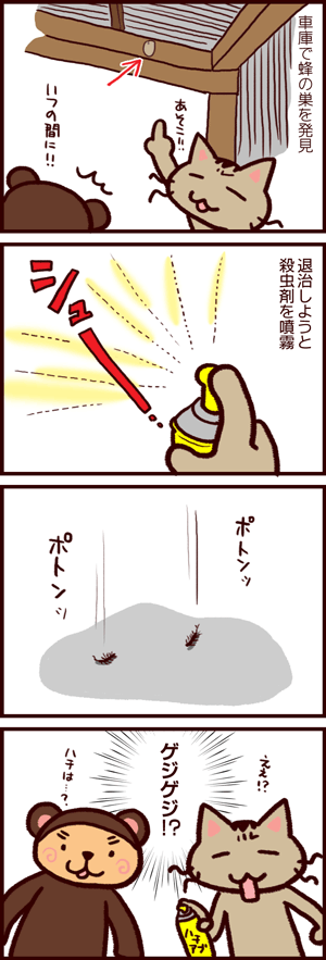 車庫が木製なのでよく蜂の巣が作られるのよね。