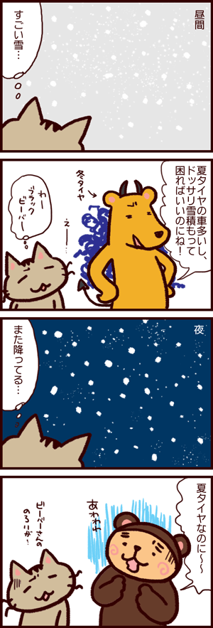 タイヤ交換したばかりのクマさんは不安でいっぱい。