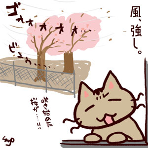 咲き始めたばかりの桜が(;;'д')