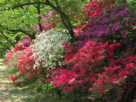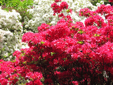 濃いピンクが満開。白は終わり気味で少し変色気味に。