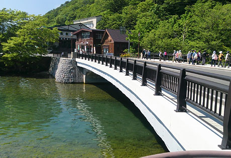 この橋の右手から奥入瀬へ続いてる。