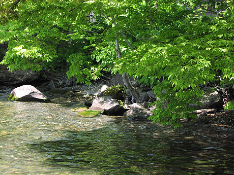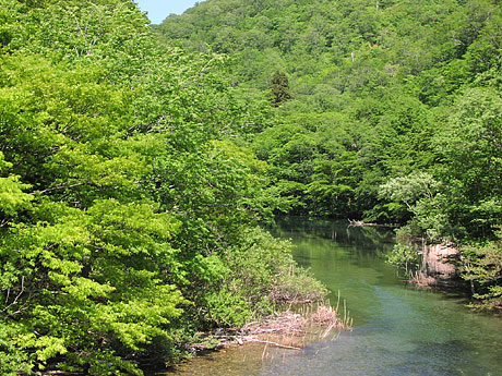 奥入瀬の入口。川に沿って遊歩道がついてる。