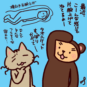 こんな変な寝相なら朝には腕が痺れてそうだけど