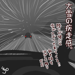 吹雪とはまた違い雪が迫ることで視界が悪い。