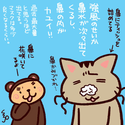 暴風警報の影響もあってか近年稀に見る大量鼻水。