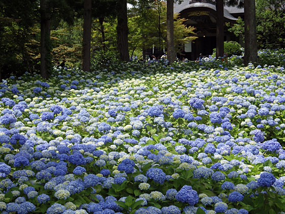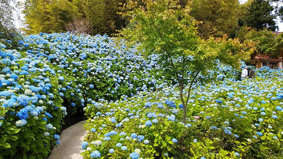 住職さん一人で15年かけて植えたという約1200株の紫陽花。