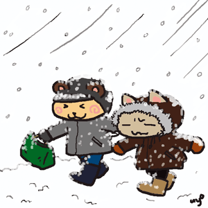 店に入ったらやんで、帰ろうとしたらまた吹雪いたし